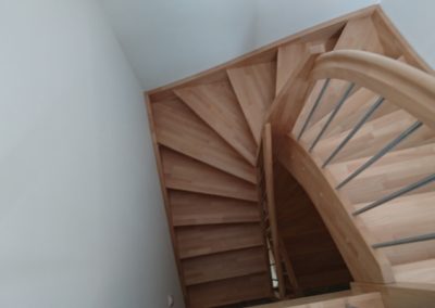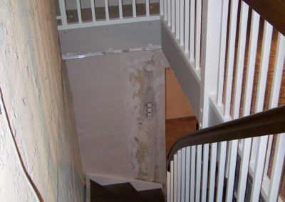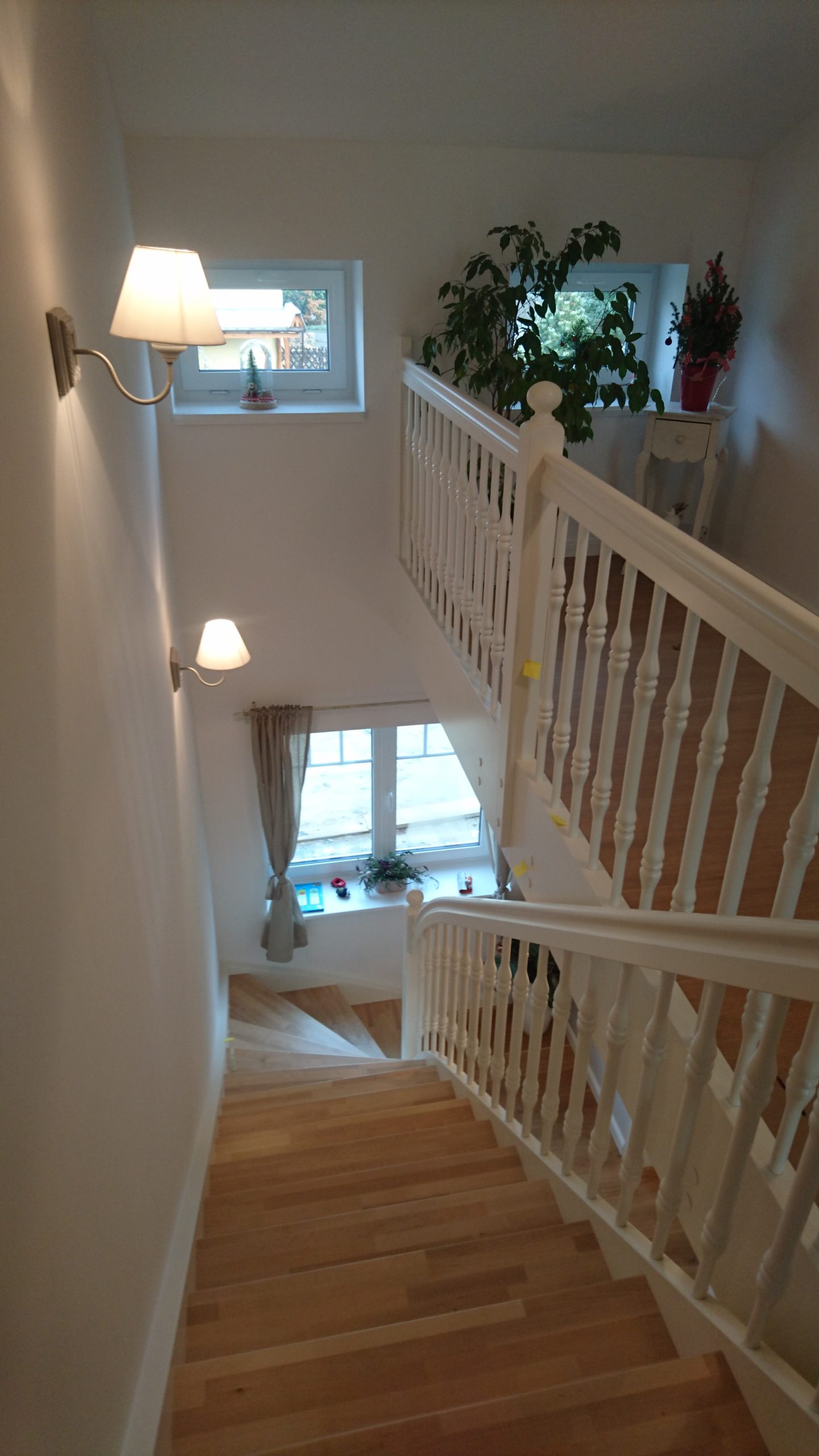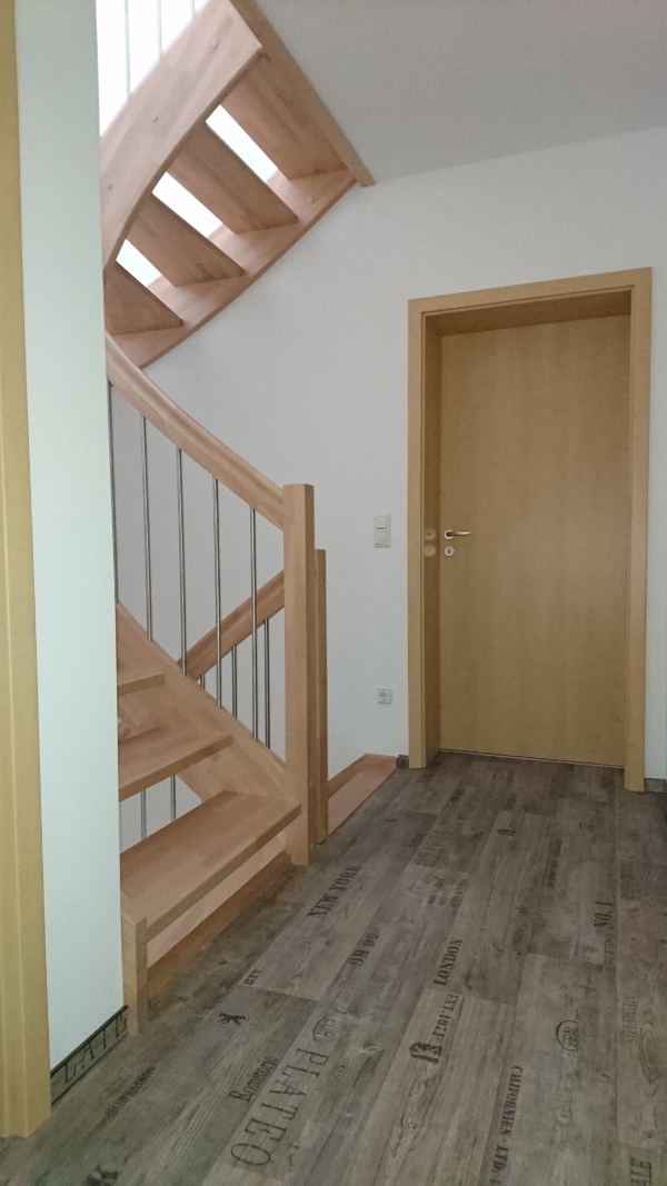 Die eingestemmte Wangentreppe erfüllte in den vergangenen Jahren meist als geschlossene Treppe mit Setzstufen eine Funktion als Sicht- und Kälteschutz. Diese Eigenschaft wird in den meisten Fällen nicht mehr benötigt, so das der Klassiker unter den Treppen durch Edelstahlsprossen, Reling- und Glasgeländer sowie farblichen Akzenten (dunkle Hölzer & Beize & farbiger Lack) optisch aufgewertet werden kann.